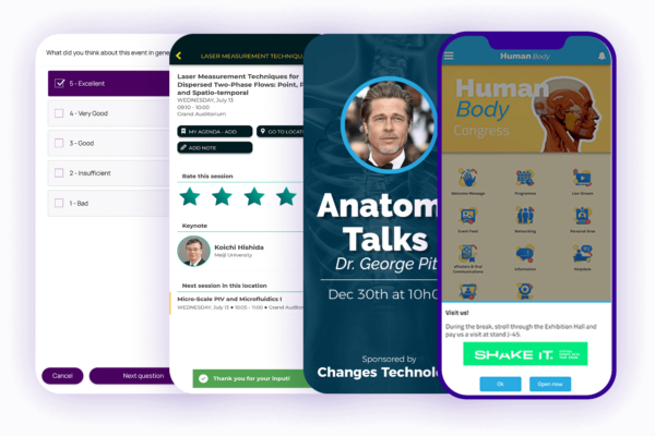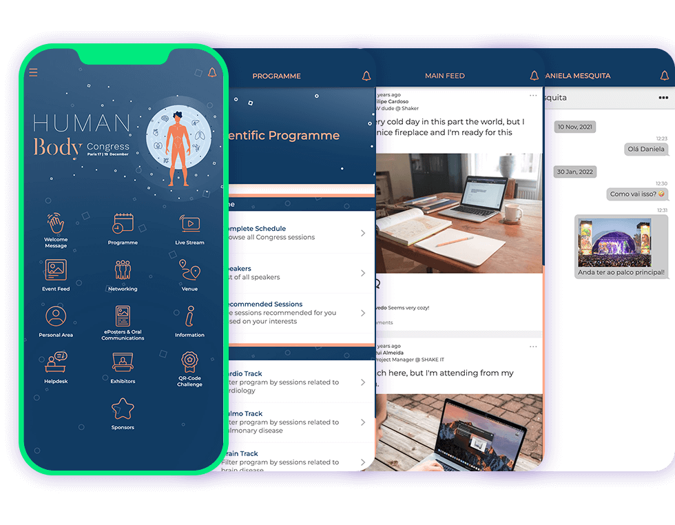 Apps that really look and feel like your event. We take care of all graphics, and you can count on a Project Manager from SHAKE IT to build the App and guide you through your decisions.