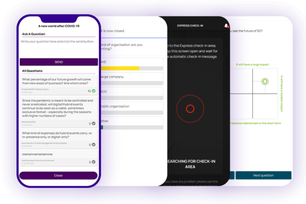 A Mobile App brings everyone together by allowing live interaction in session through Q&A and Live Polling. It can also facilitate checking in at the venue as well as being a tool to interact with screens through digital activations.