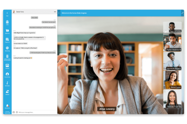 Our platforms offer a visual exhibition floor where exhibitors and sponsors can showcase their offers and convey their message, allowing attendees to chat with representatives, setup meetings and engage with the brand.