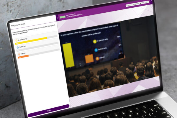 Remote attendees want to be engaged, and we provide all kinds of solutions to facilitate with that. Interactions like quizzes, games, sharing pictures and commenting sessions can be part of your event. And with our networking module, attendees can find other people that match their interests, setup video-chat meetings and chat 1-on-1.